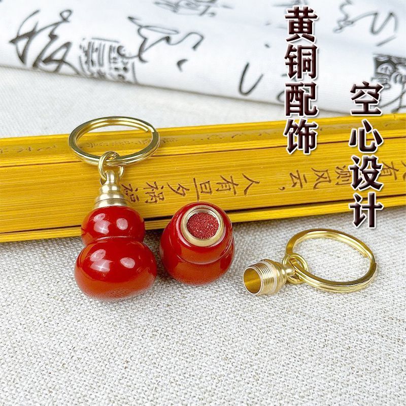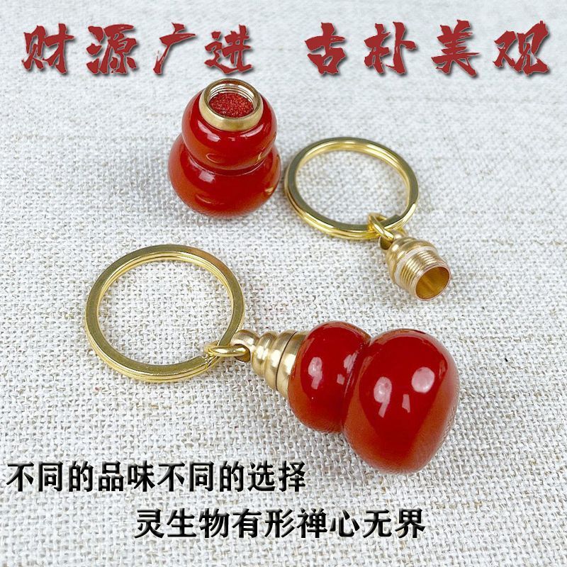 Cinnabar Copper Portable Hollow Gourd Pendant Car Keychain Creative Rabbit Year Fortune Couple Pendant quantity