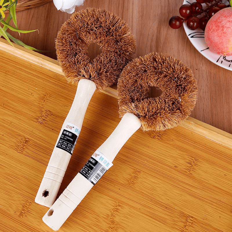 Coconut Palm Brush, Dishwashing Brush, Long Handle Cleaning Brush, Stain Removal, Non-stick Oil