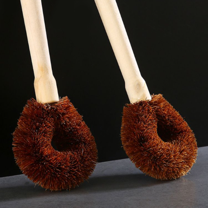 Coconut Fiber Pot Brush [Solid Wood Handle / 2 Pieces]