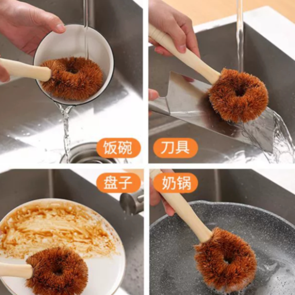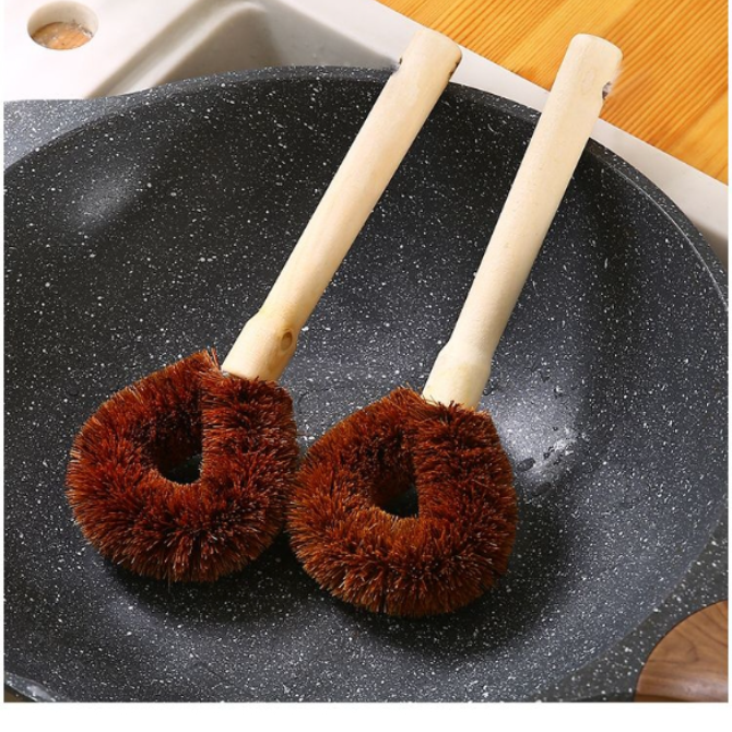 Coconut Palm Brush Pot Cleaning Brush Kitchen Brush Long Handle Cleaning Oil Removal Tool
