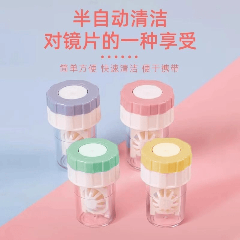 Contact Lens Storage Box, Portable, Sterilizing, Manual Cleaning Device for Colored Lenses