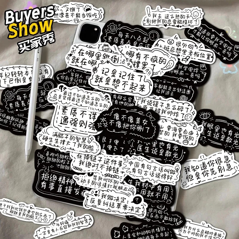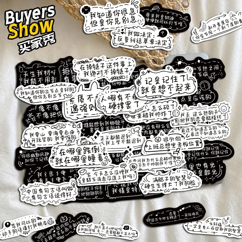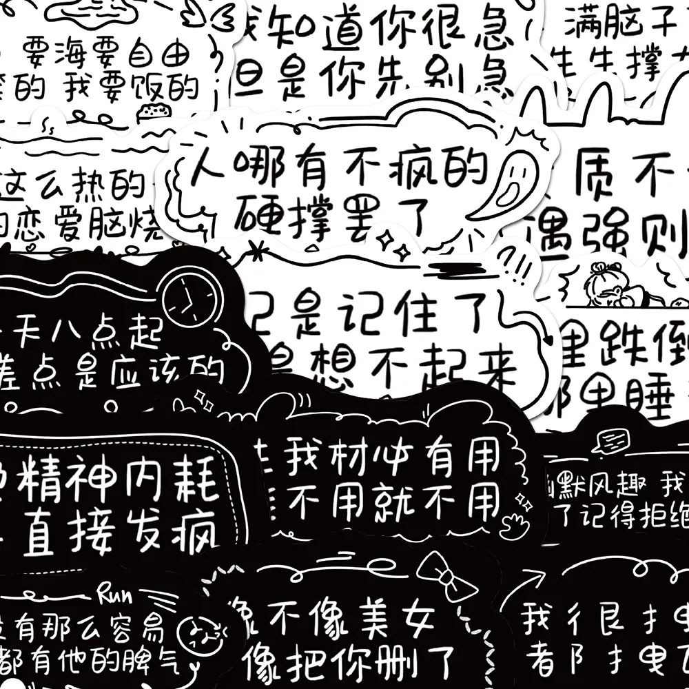 Crazy Black and White Literature Stickers High School Student Quotes Funny Silly Mental State Notebook Waterproof Stickers quantity