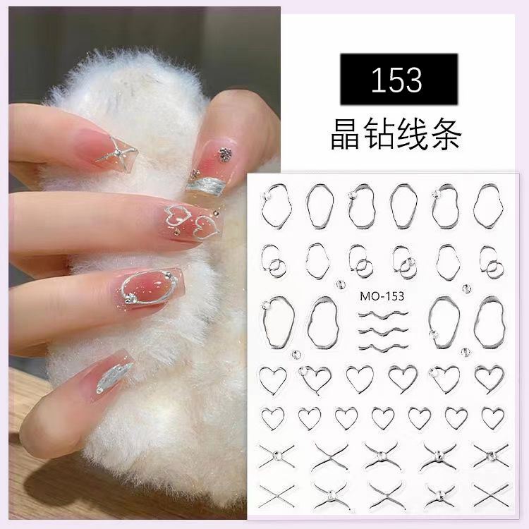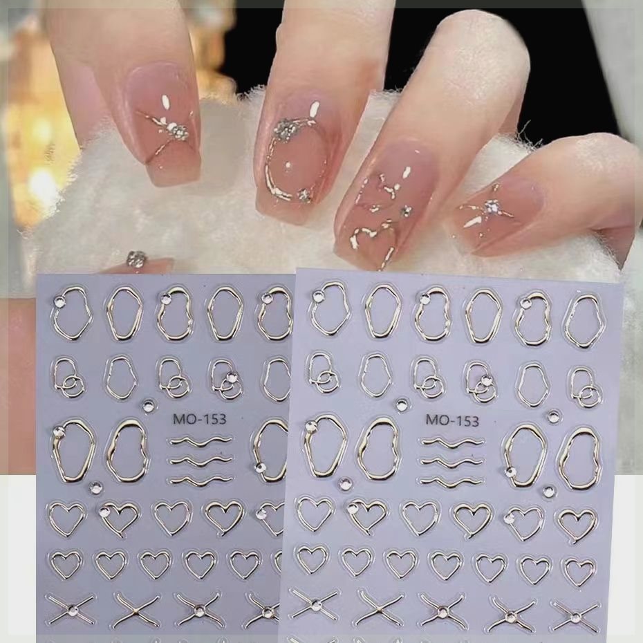 Crystal Diamond Hot Stamping Line Nail Art Stickers, Hollow Mirror Geometric Heart with Rhinestones, Metallic Nail Decorations quantity