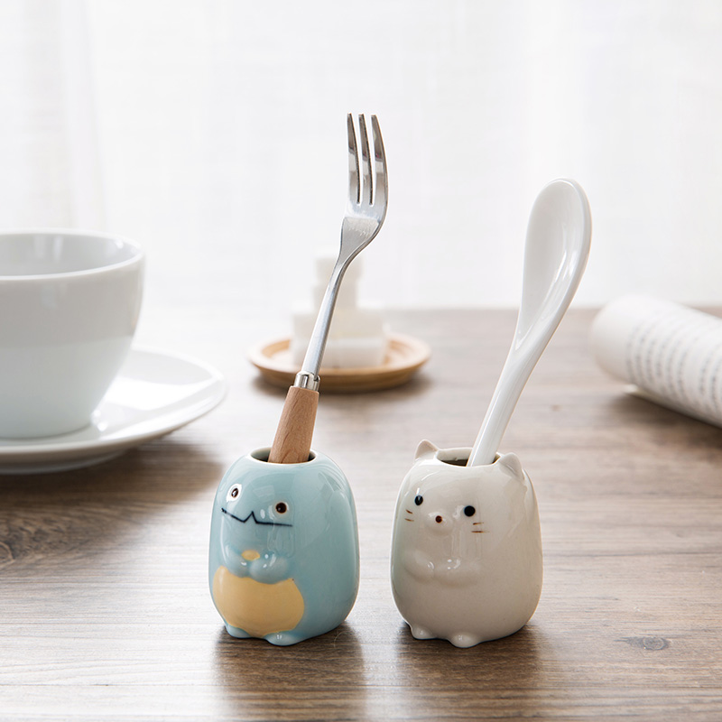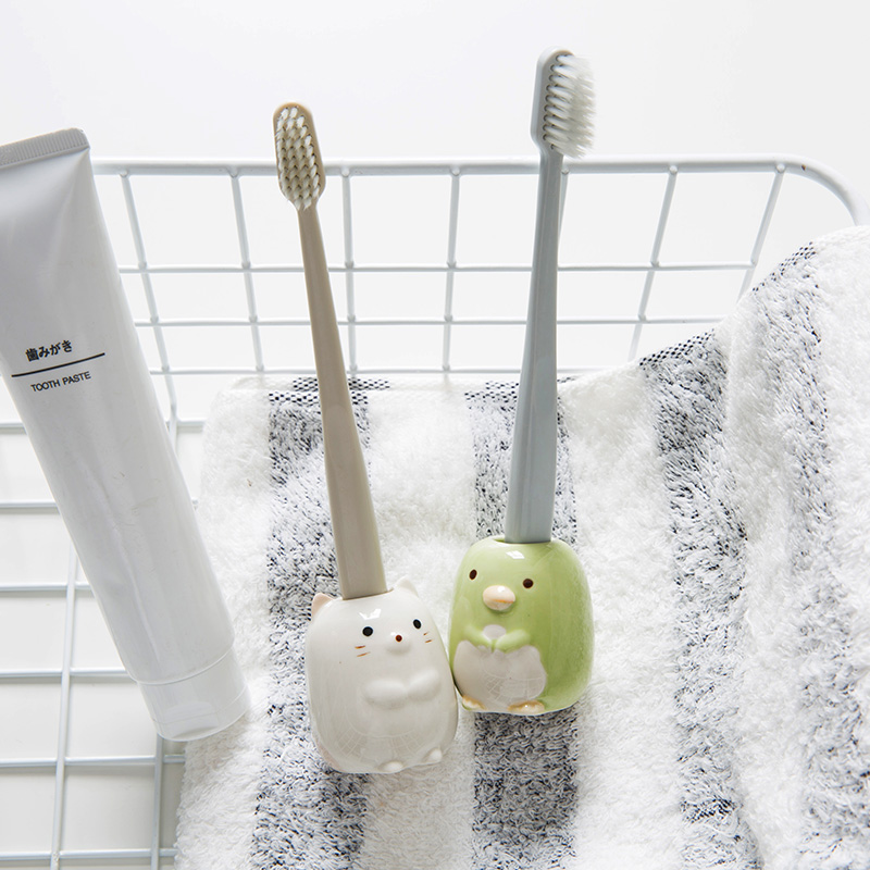 Cute Cartoon Ceramic Bathroom Toothbrush Holder Desktop Storage Jar Creative Toothpick Holder for Children Toothbrush Stand quantity