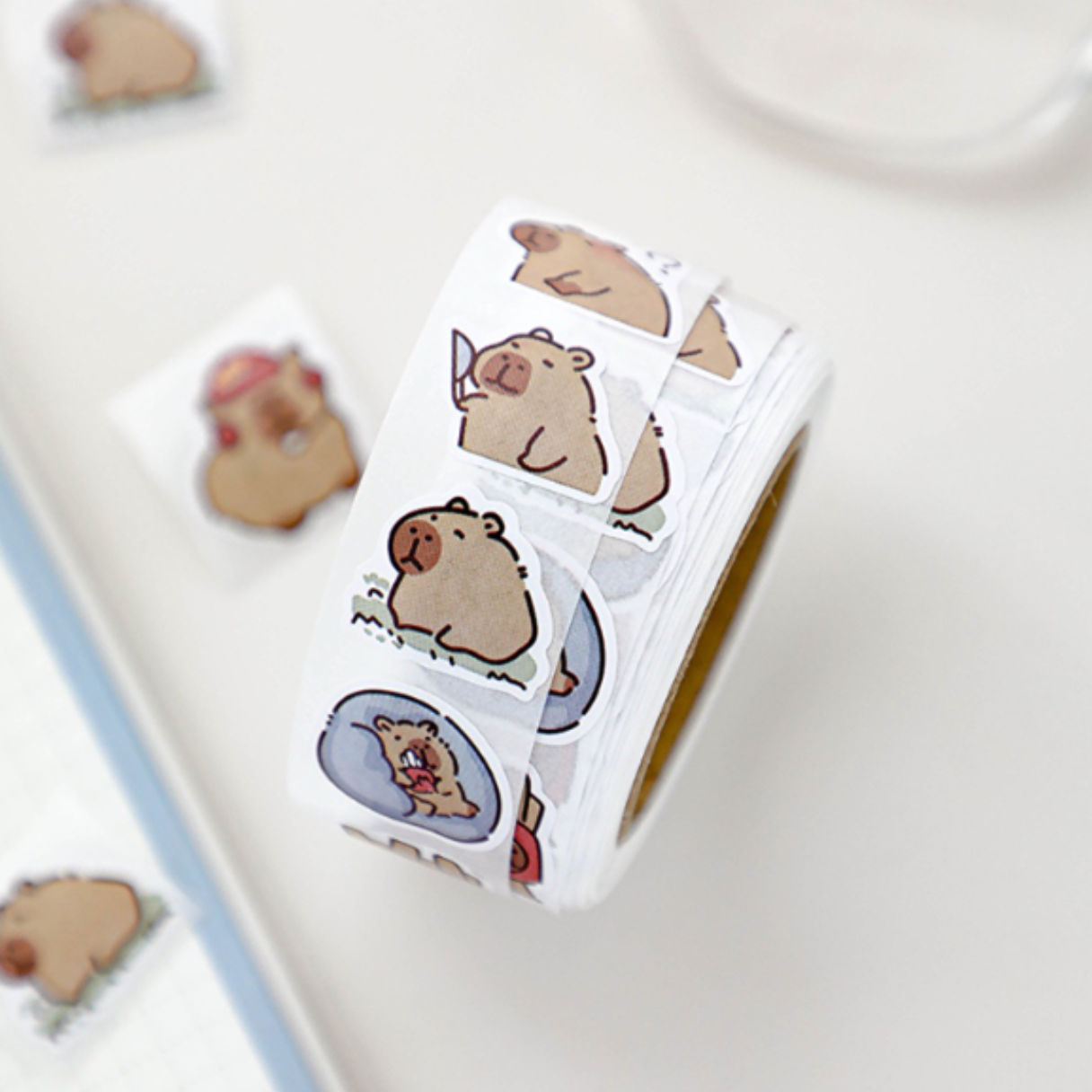 Capybara Roll Stickers - 500 stickers - 1 roll