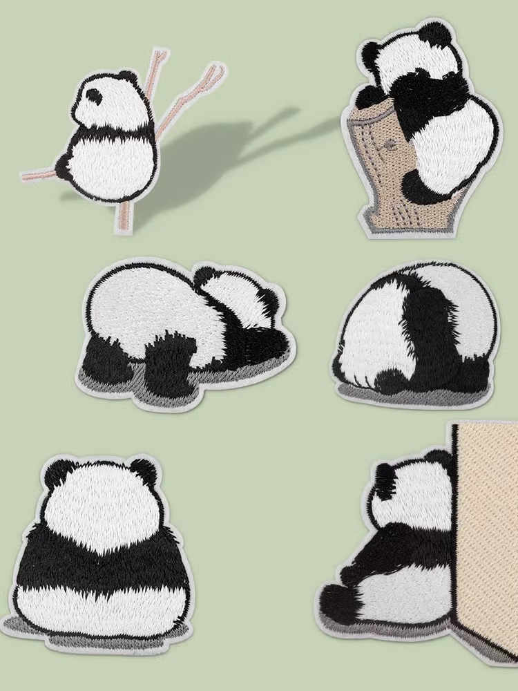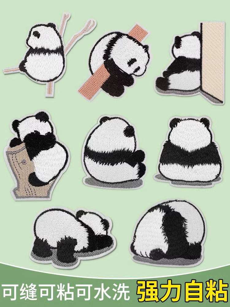 Cute Panda Patch for Down Jackets, Self-Adhesive, No Sew, Cartoon Embroidery quantity