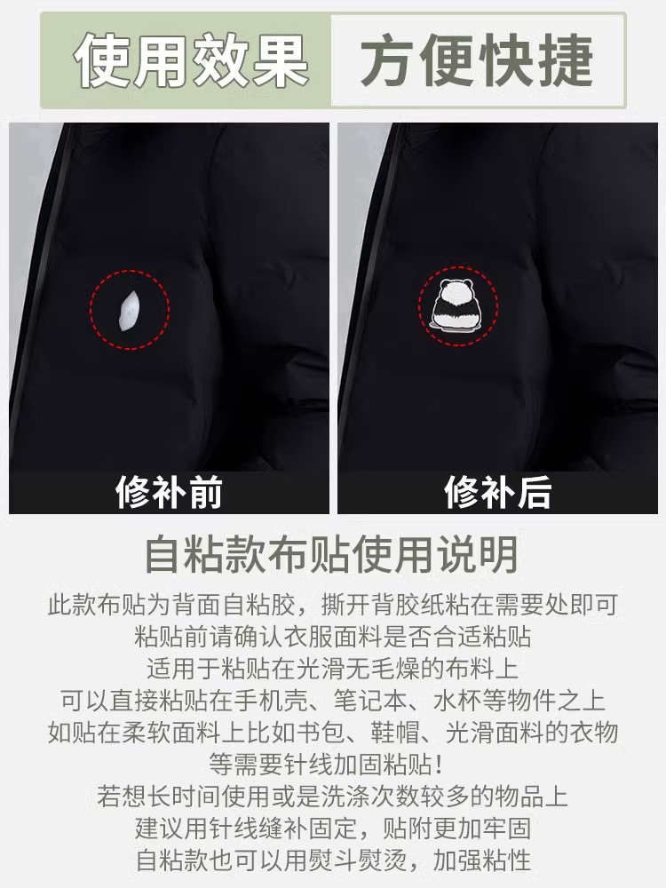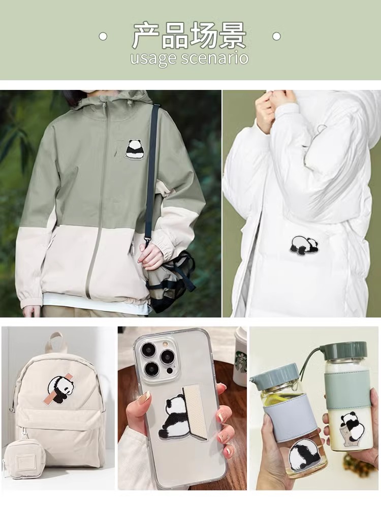 Cute Panda Patch for Down Jackets, Self-Adhesive, No Sew, Cartoon Embroidery