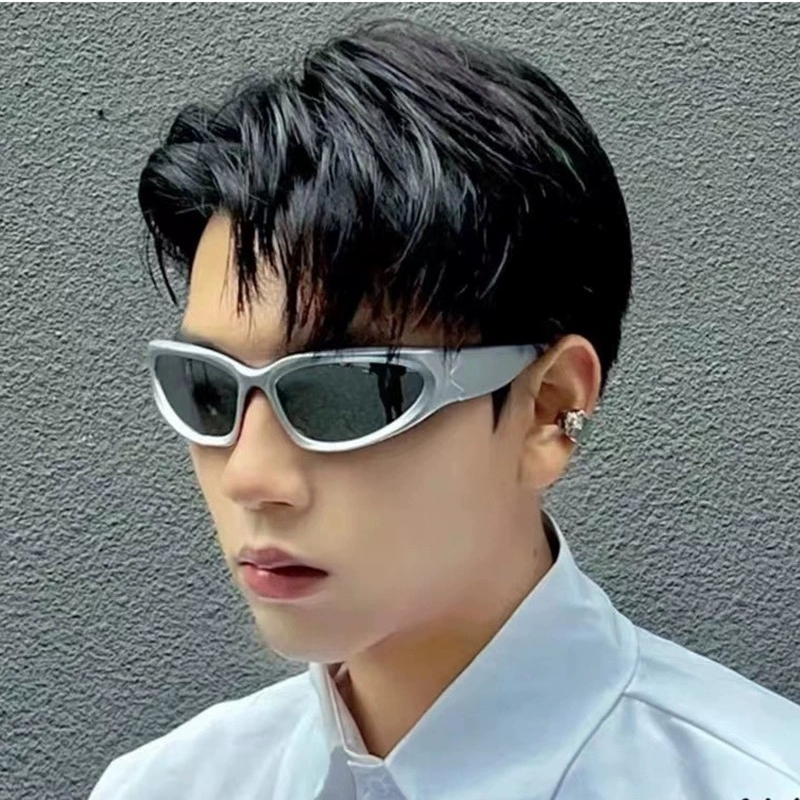 Cyber Future Style Silver Y2K Unisex Cycling Sunglasses, INS Millennium Pilot Round Face Sunglasses