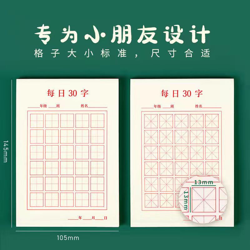 Daily Practice 30-Character Grid Practice Book for Elementary School Students, Thickened Hard Pen Calligraphy Paper quantity