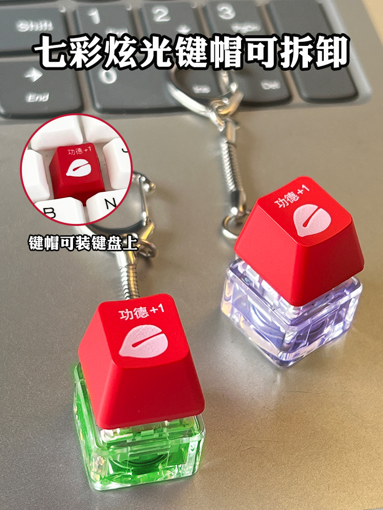 Decompression Button Wooden Fish Light-Up Keycap Accumulator Keychain Toy