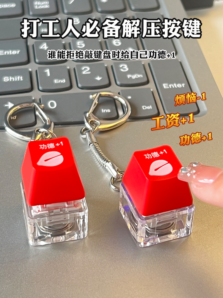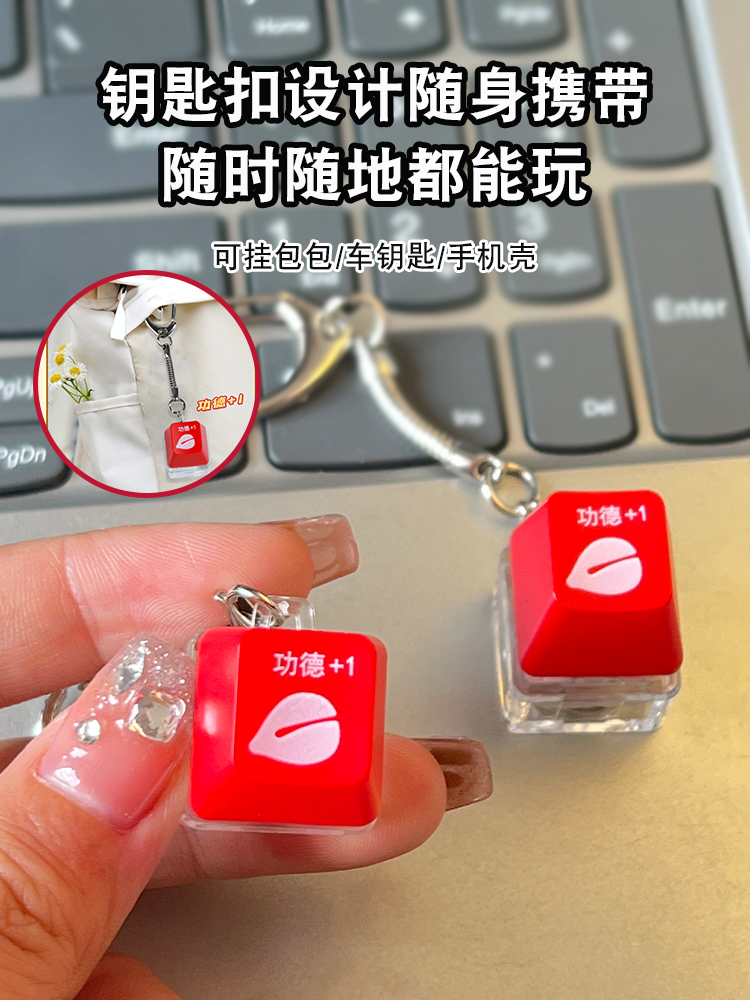 Decompression Button Wooden Fish Light-Up Keycap Accumulator Keychain Toy quantity