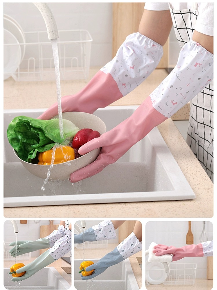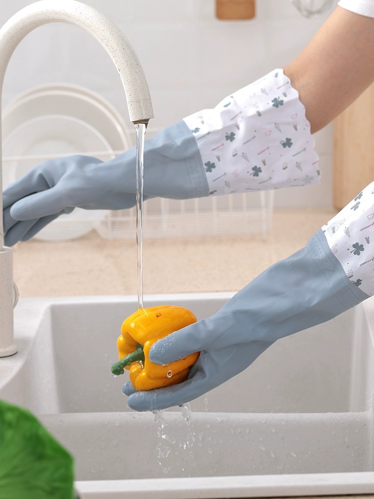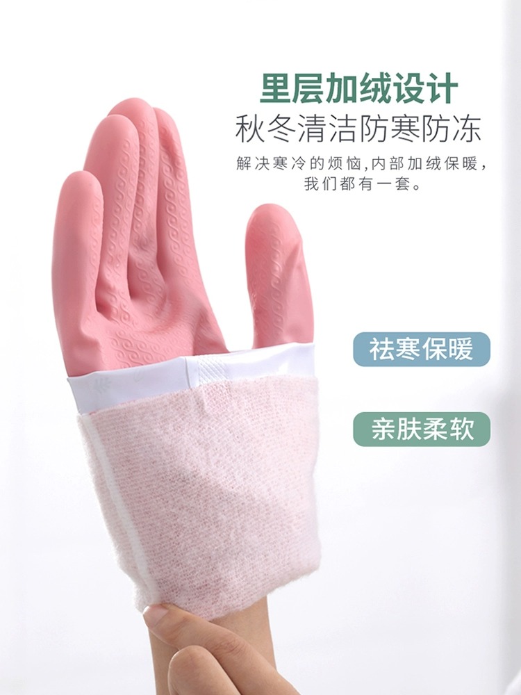 Dishwashing Gloves Women Waterproof Rubber Fleece Winter Kitchen Durable Type Washing Clothes Skin Household Thickened Housework quantity