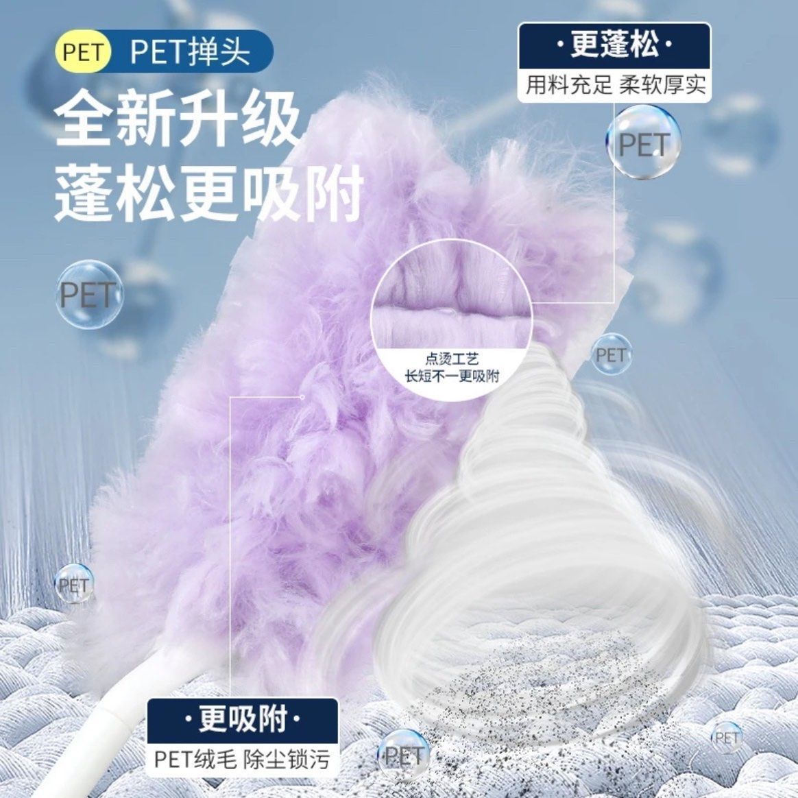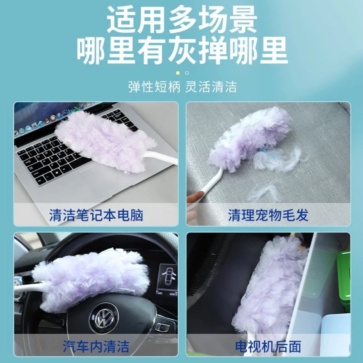 Handheld Short Handle 1 Piece + Double-Sided PET Duster Head 6 Pieces [Static Adsorption + Strong Dust Removal] No Flying Dust