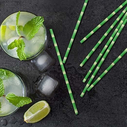 Disposable Green Bamboo Straws for Bars, KTV Decoration, Imitation Tree Pattern Bamboo Straws, Internet Celebrity Bamboo Cup for Street Vendors quantity