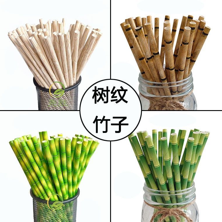 Disposable Green Bamboo Straws for Bars, KTV Decoration, Imitation Tree Pattern Bamboo Straws, Internet Celebrity Bamboo Cup for Street Vendors