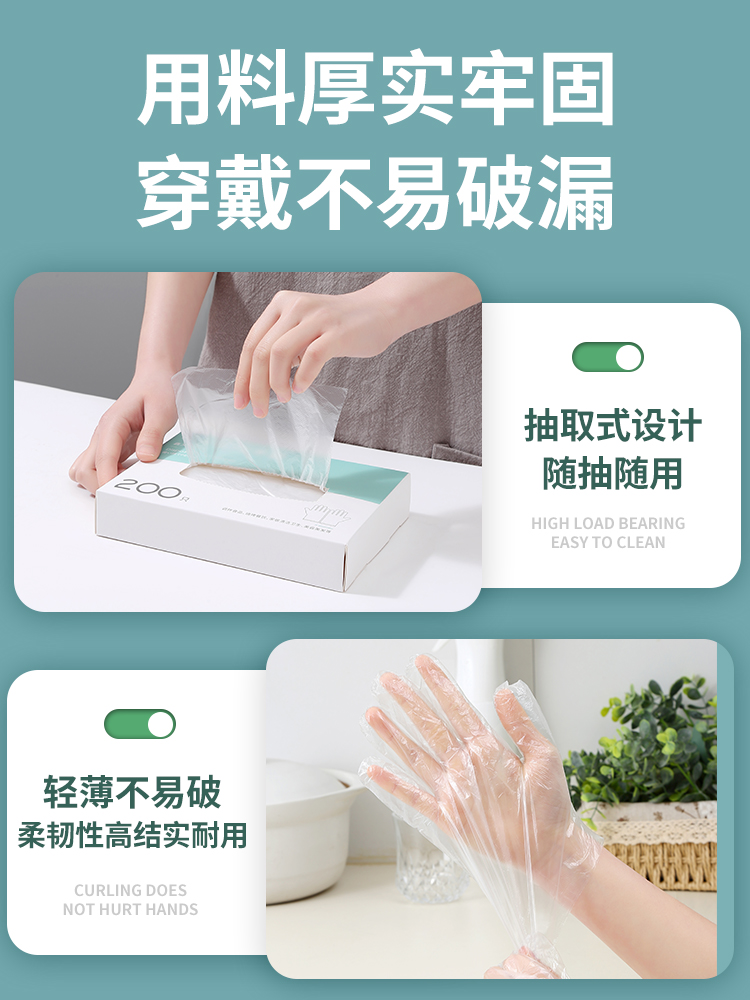 Disposable PE Gloves, Thick Plastic Film for Catering, Commercial and Home Use, Boxed Pull-out quantity
