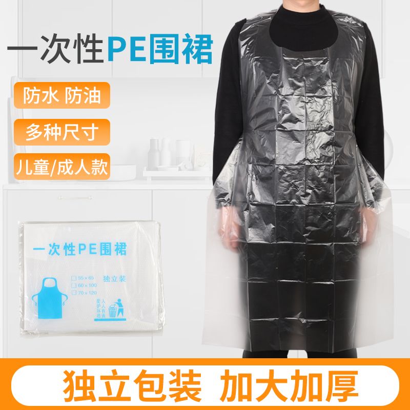 Disposable Plastic Apron Adult Child Thick Transparent Catering Hot Pot Lobster PE Waterproof Oil-Proof Independent Packaging quantity