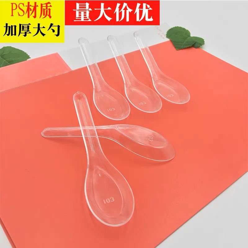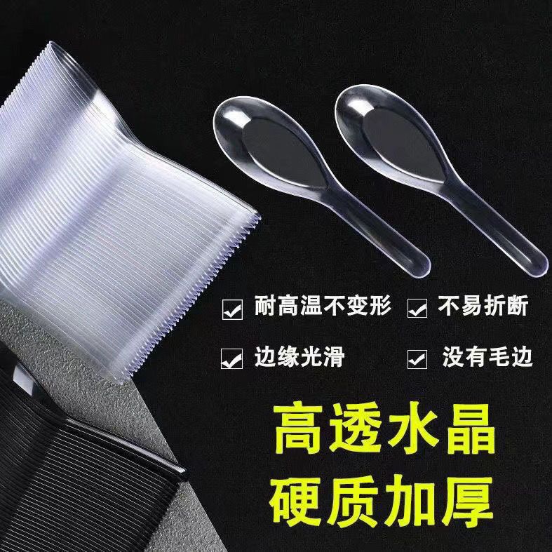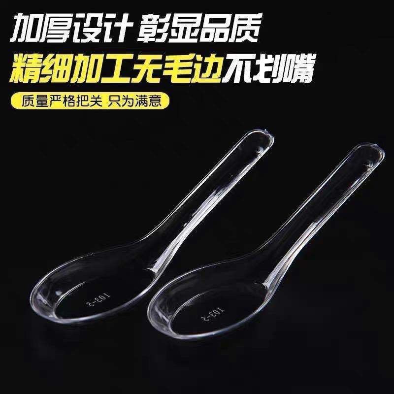 Disposable Spoon Plastic Transparent Ice Powder Soup Spoon Commercial S103 Thickened Crystal Spoon Takeout Tableware Small Spoon Soup Spoon quantity