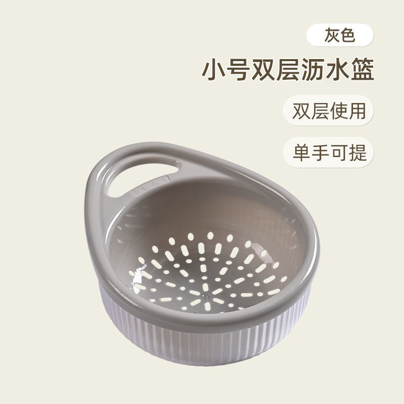Double-Layer Handle Drain Basket Simple Style Fruit Basket Home Fruit and Vegetable Basket Vegetable and Fruit Partition Storage Preparation Basket