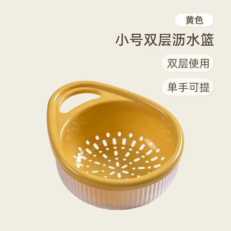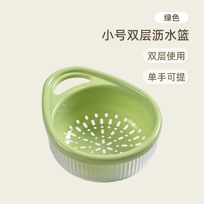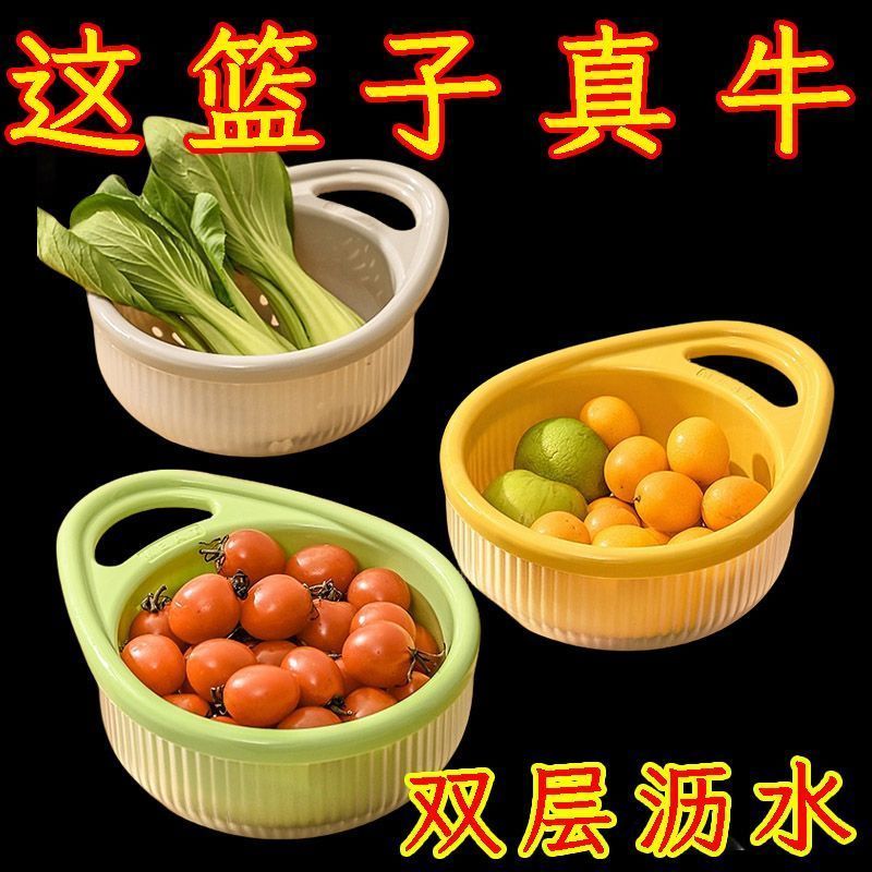 Double-Layer Handle Drain Basket Simple Style Fruit Basket Home Fruit and Vegetable Basket Vegetable and Fruit Partition Storage Preparation Basket quantity