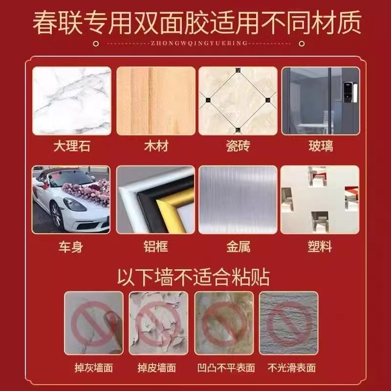 Double-Sided Adhesive for Posting Couplets No-Traceless Self-Adhesive Strips Universal Wall Posting Couplets Blessing Character Special Strong Double-Sided Tape