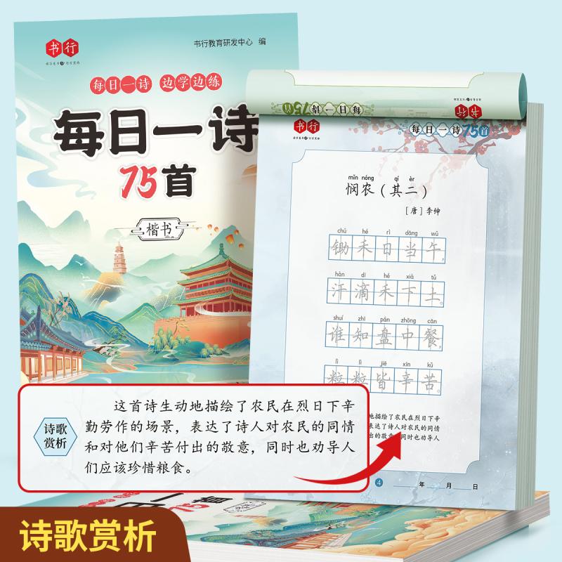 Elementary School Student Ancient Poetry Practice Notebook, Daily Practice, Hard Pen Calligraphy Paper quantity