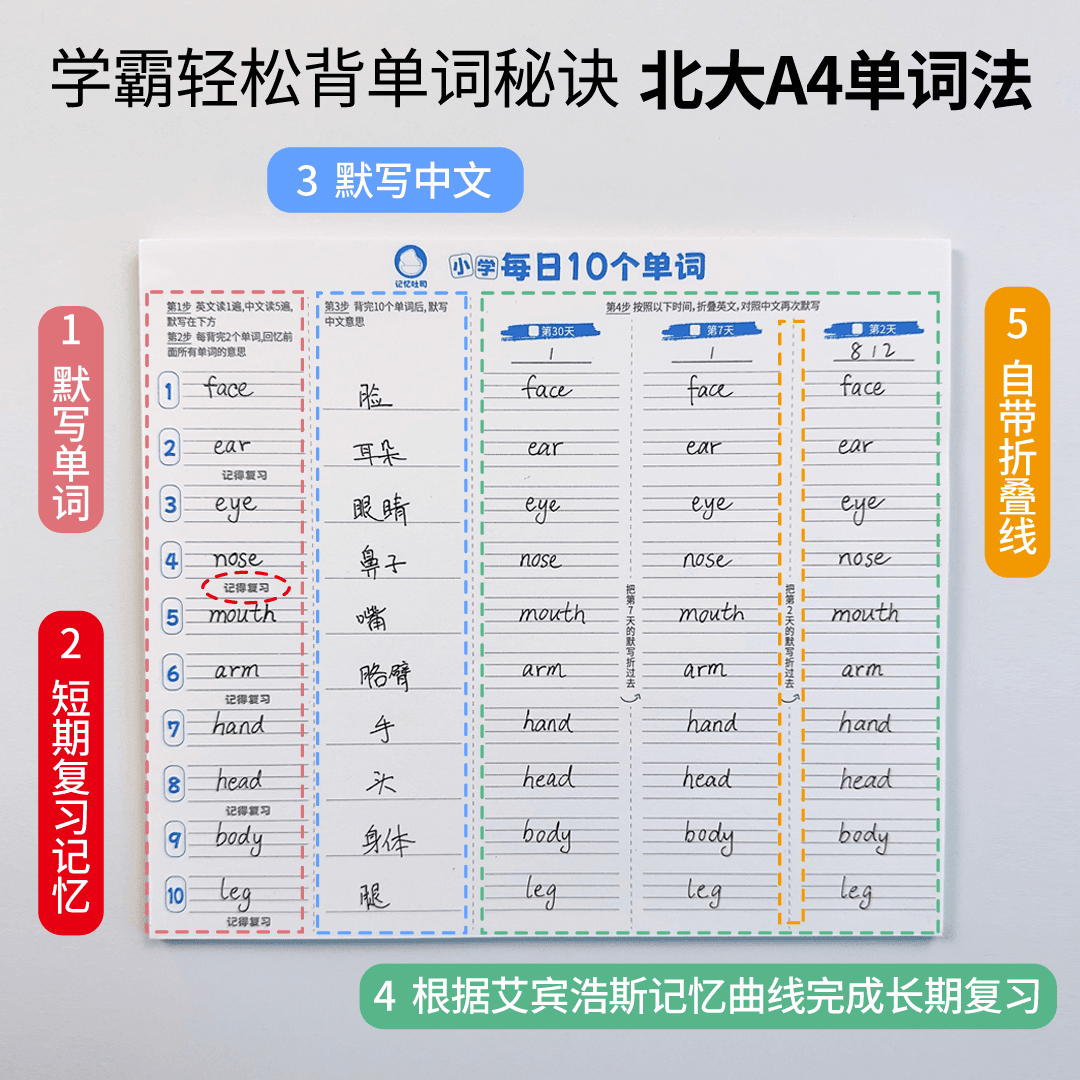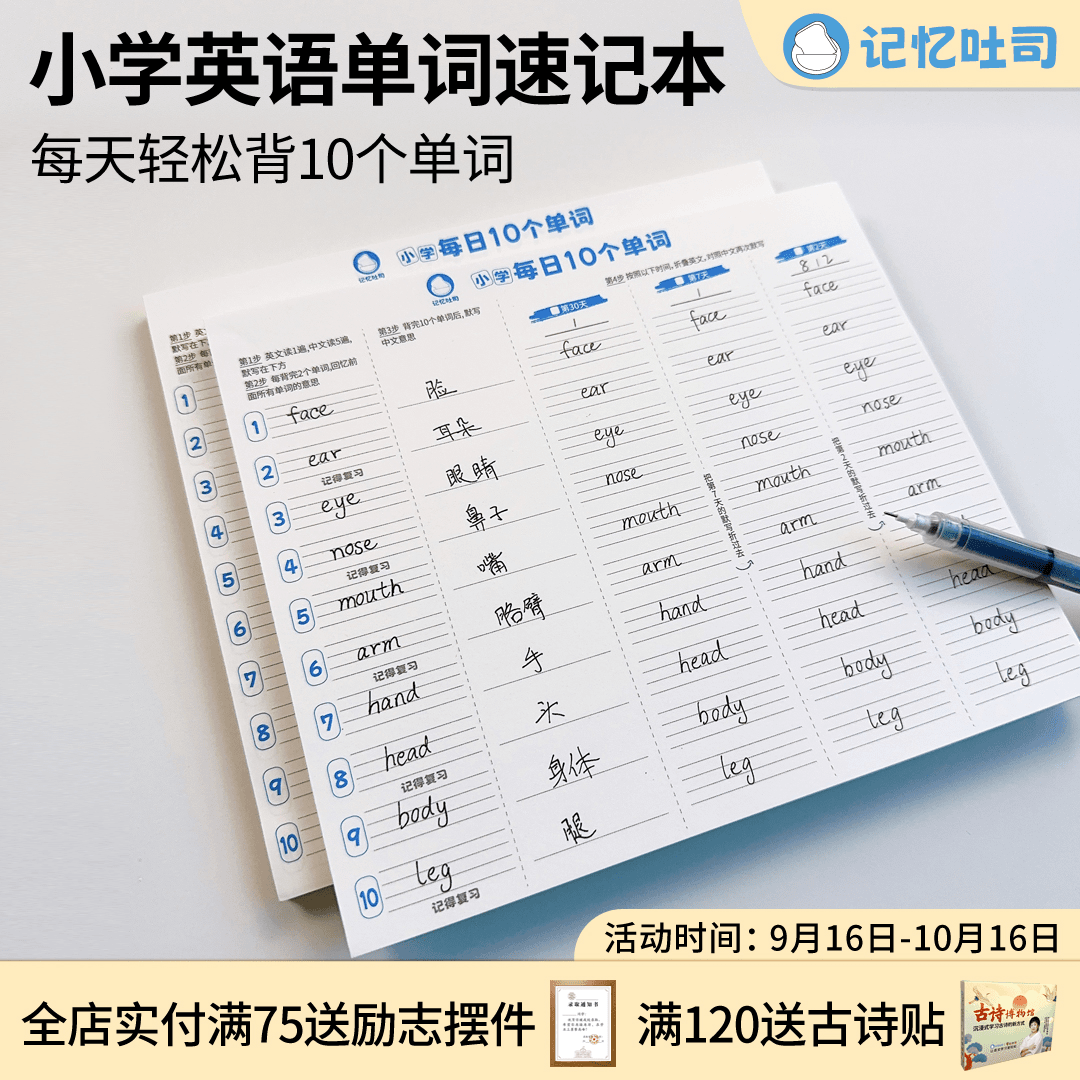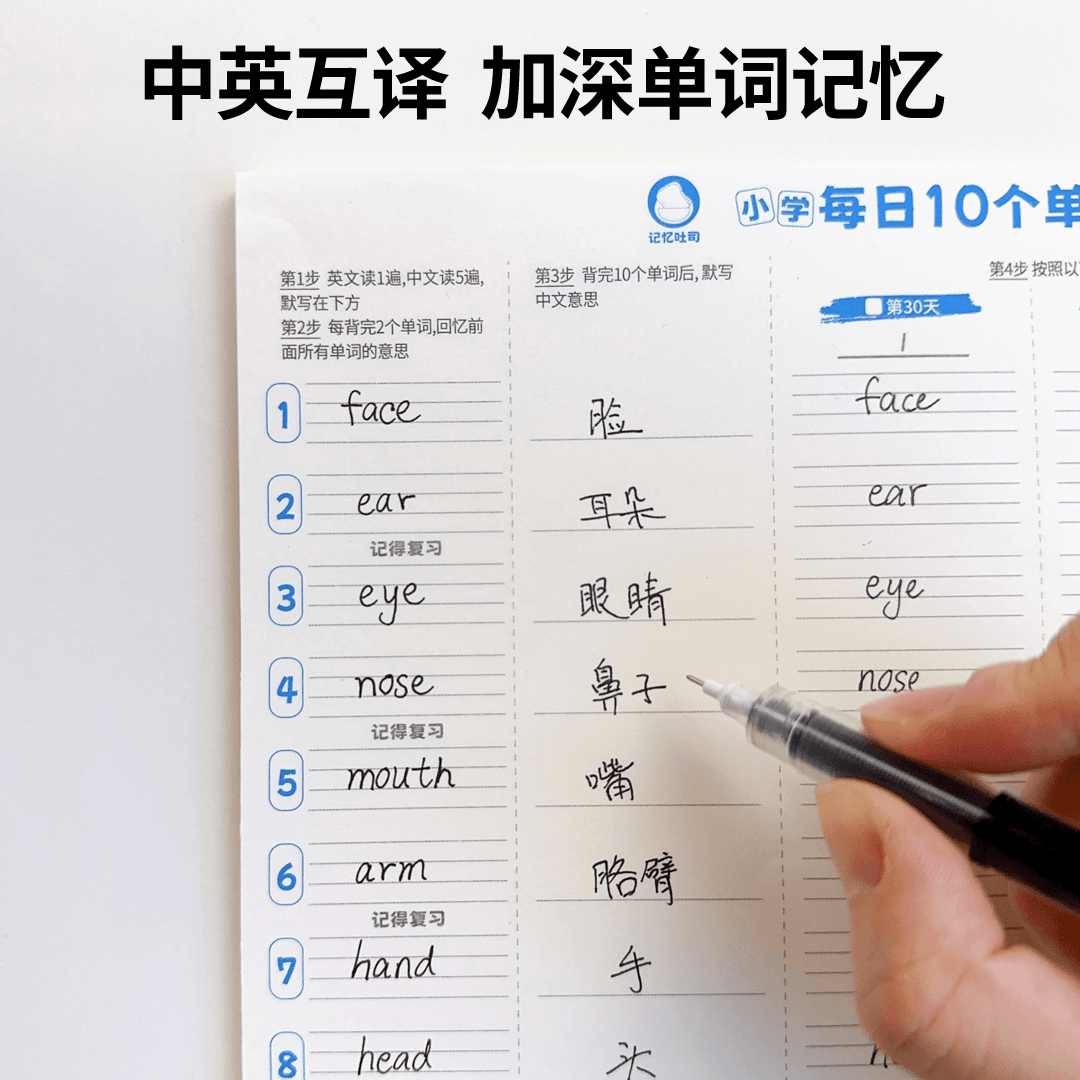 English Vocabulary Memorization Notebook, Fun Selection for Elementary School Daily 10 Words