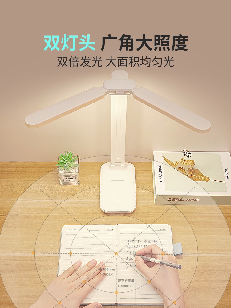 Eye Protection Desk Lamp Learning LED Dual-Head Charging and Plugging Two-in-One Bedroom Bedside Lamp Student Dormitory Reading Lamp