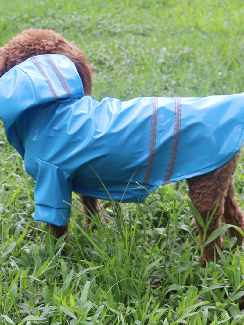 Fashionable PU Reflective Strip Pet Raincoat Waterproof for Large Dogs Small Teddy Dog Raincoat