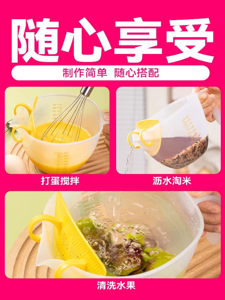 Filtering Multi-Functional Measuring Cup Rice Washing Tool Egg Liquid Filter Household Cream Whipping Baking Strainer Spoon quantity