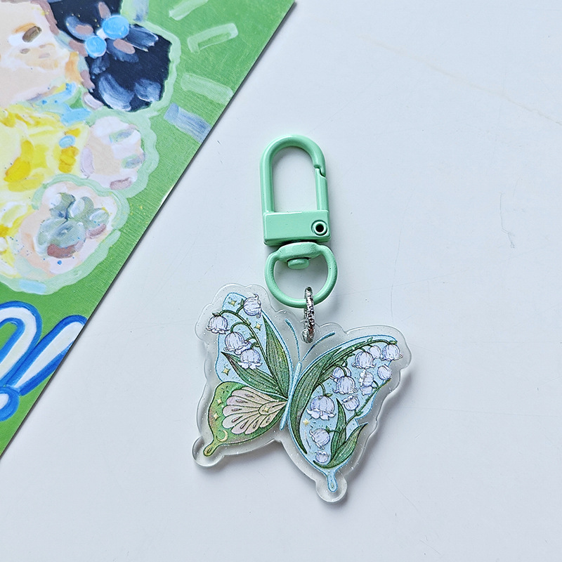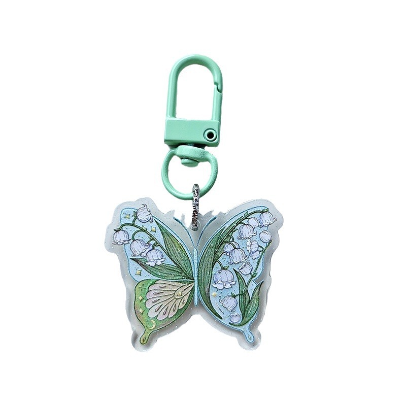 Fine Glitter Double-Sided Butterfly Lily Flower Dopamine Colorful Relief Car Keychain Pendant Headphone Case for Girls
