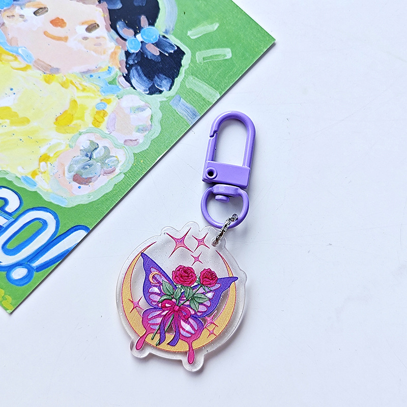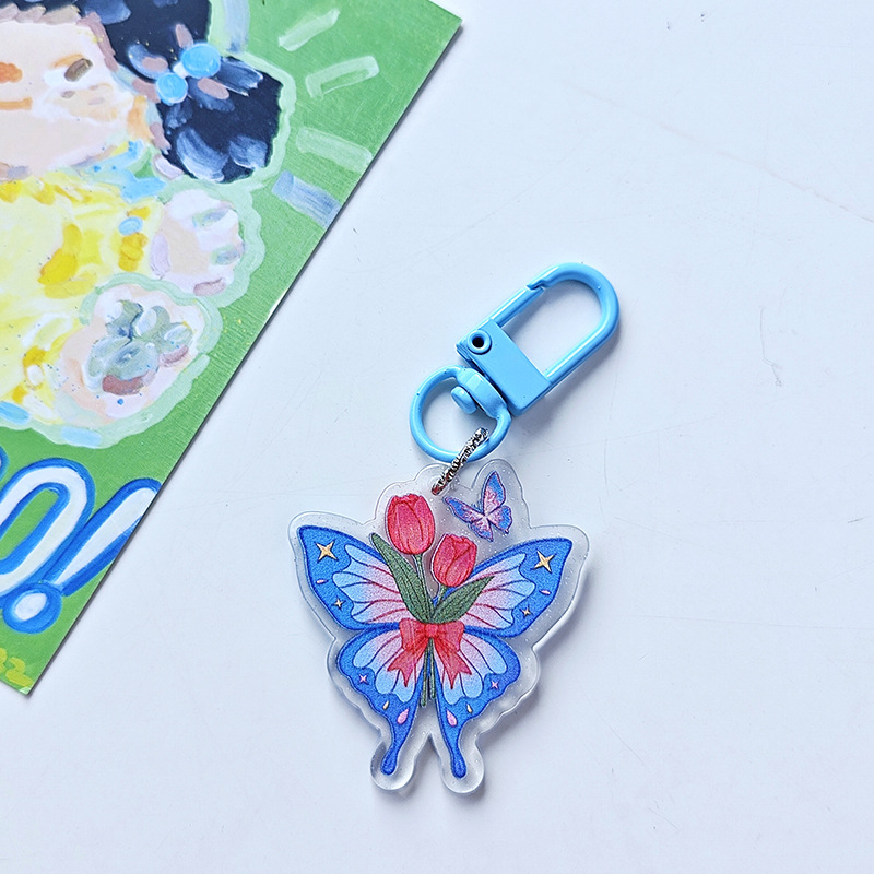 Fine Glitter Double-Sided Butterfly Lily Flower Dopamine Colorful Relief Car Keychain Pendant Headphone Case for Girls quantity