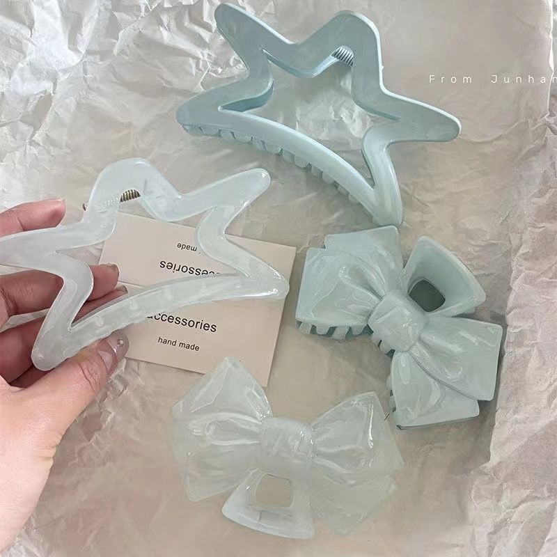 French Sweetheart Cream Blue Bow Pentagon Hair Clip for Girls Hair Grabbing Shark Clip for Updo Hair Accessories