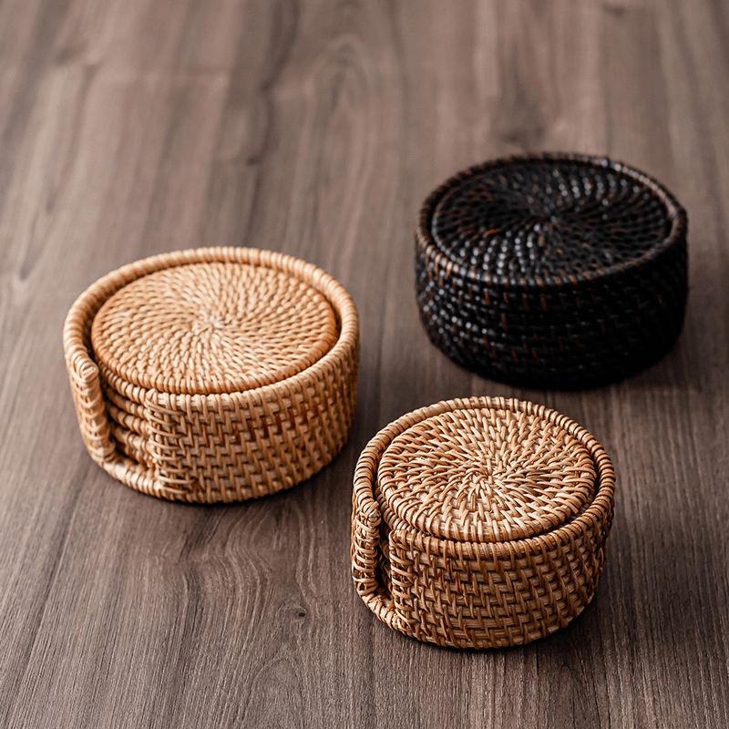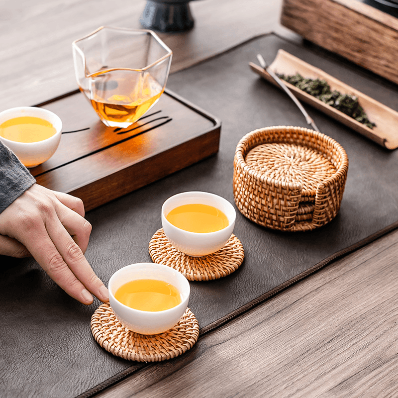 Heat-Resistant Non-Slip Kung Fu Tea Set Accessories, Handmade Rattan Woven Coasters, Bamboo Tea Cup Mat Set quantity