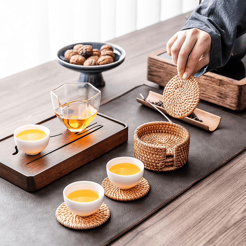Heat-Resistant Non-Slip Kung Fu Tea Set Accessories, Handmade Rattan Woven Coasters, Bamboo Tea Cup Mat Set