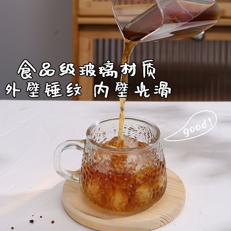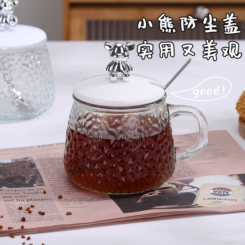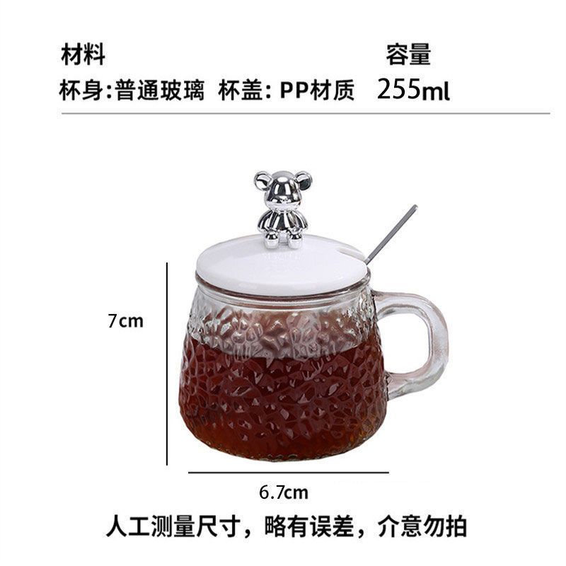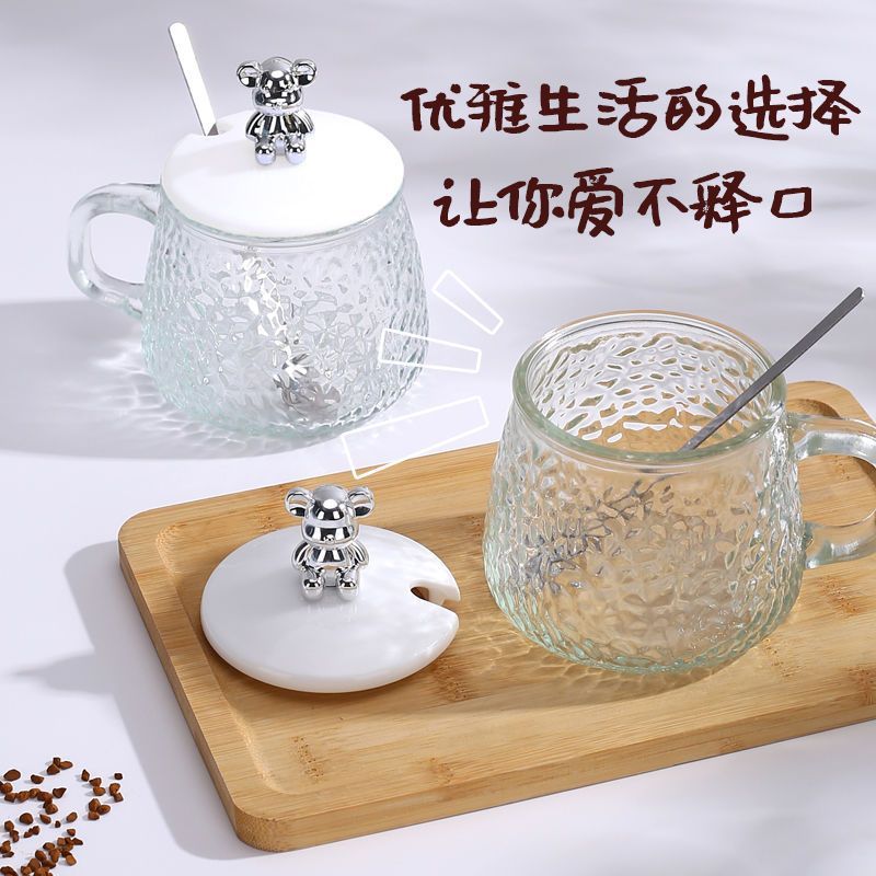 High-Value Cute Water Cup for Girls, Hammered Glass Cup with Plastic Lid quantity