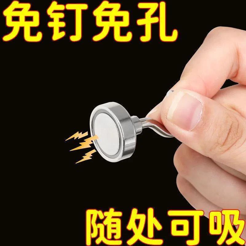 Hook-Free Punch Strong Magnet Magnetic Round Storage Multi-Purpose Strong Door Back Refrigerator Bathroom Magnetic Hook