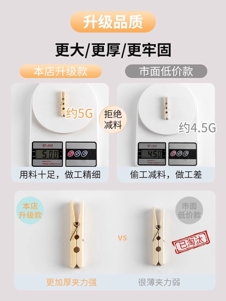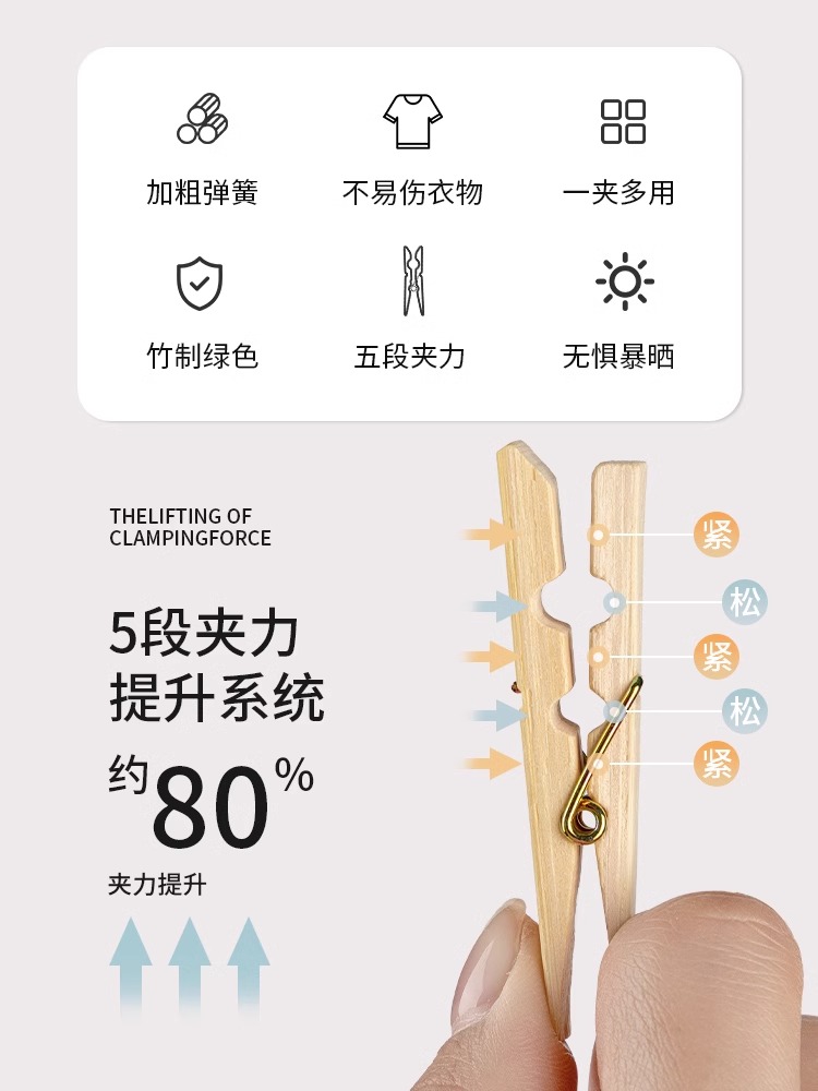 Household Bamboo Clips Clothes Clips Windproof Drying Clothes Fixed Clips Strong No Trace Old Style Wooden Clips quantity