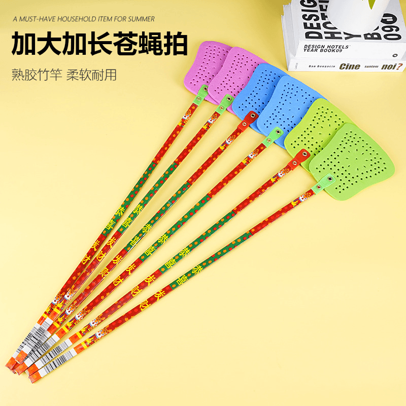 Household Foam Fly Swatter, Large Thick Plastic Long Handle, Bamboo, Summer Manual Mosquito and Fly Repellent