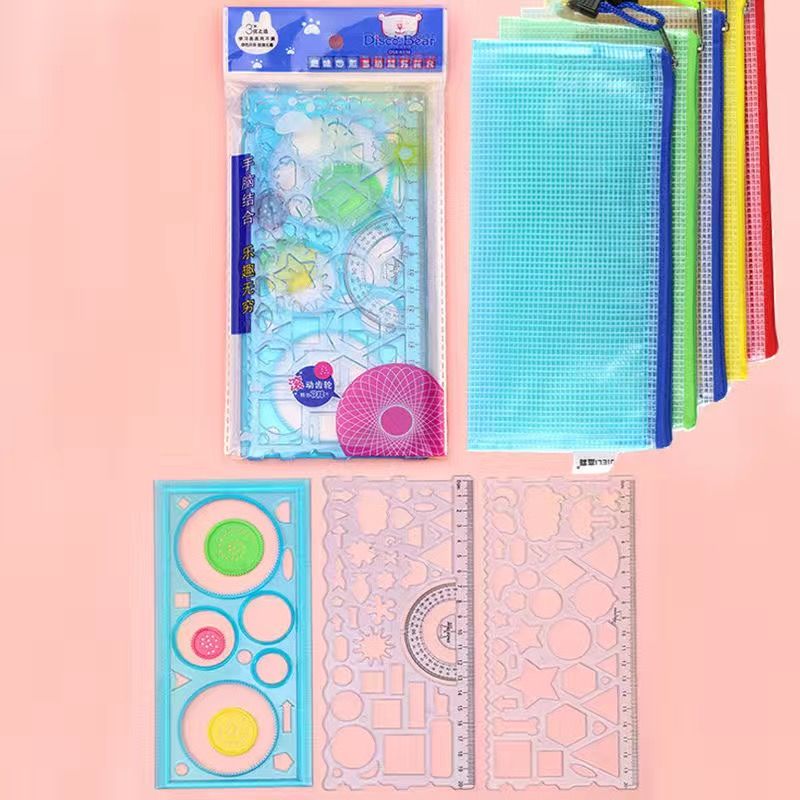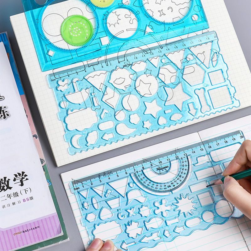 1 Pair of Blue Geometric Rulers + 1 Flower Ruler + One Set of Template Rulers