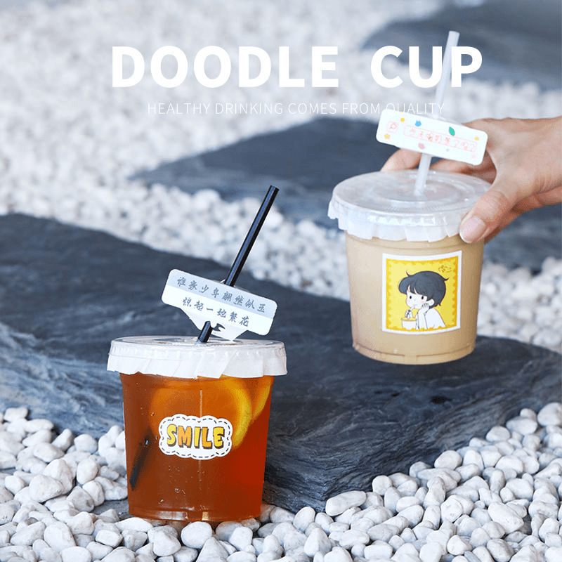 Disposable Milk Tea Cup - 98 Model * 50 pieces + 98 Lids * 50 pieces + Round Leak-proof Paper * 50