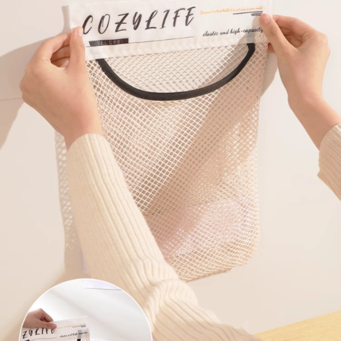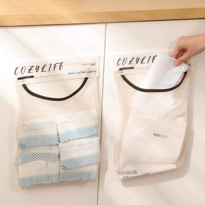 Kitchen Garbage Bag Storage Tool Plastic Bag Wall-Mounted Large Capacity Cabinet Door Storage Net Bag Household