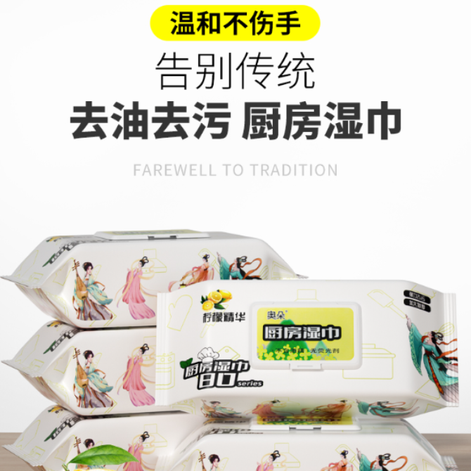 Kitchen Wet Wipes for Oil and Dirt Removal, Heavy-duty Cleaning Wipes for Home Use