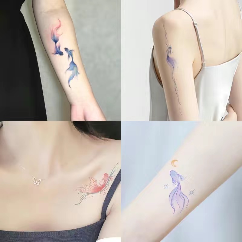Koi Fish Tattoo Stickers Blue Aesthetic Waterproof for Wrist and Collarbone quantity
