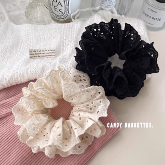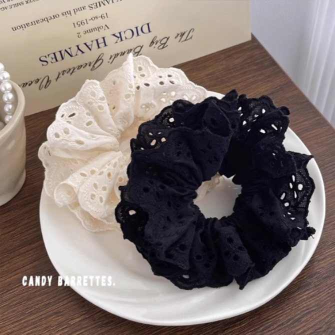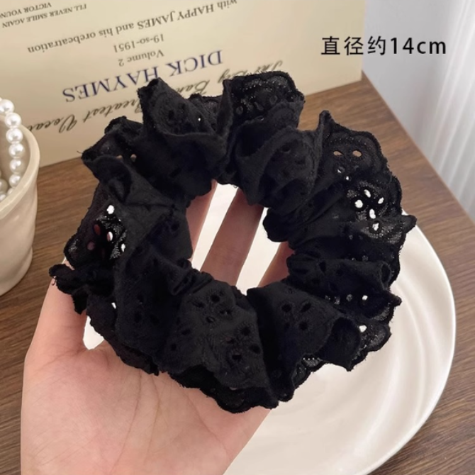 Large Intestine Hair Tie Women’s French Retro Hair Rope Simple Elegant Hair Band Lace Hollow Large Intestine Ring