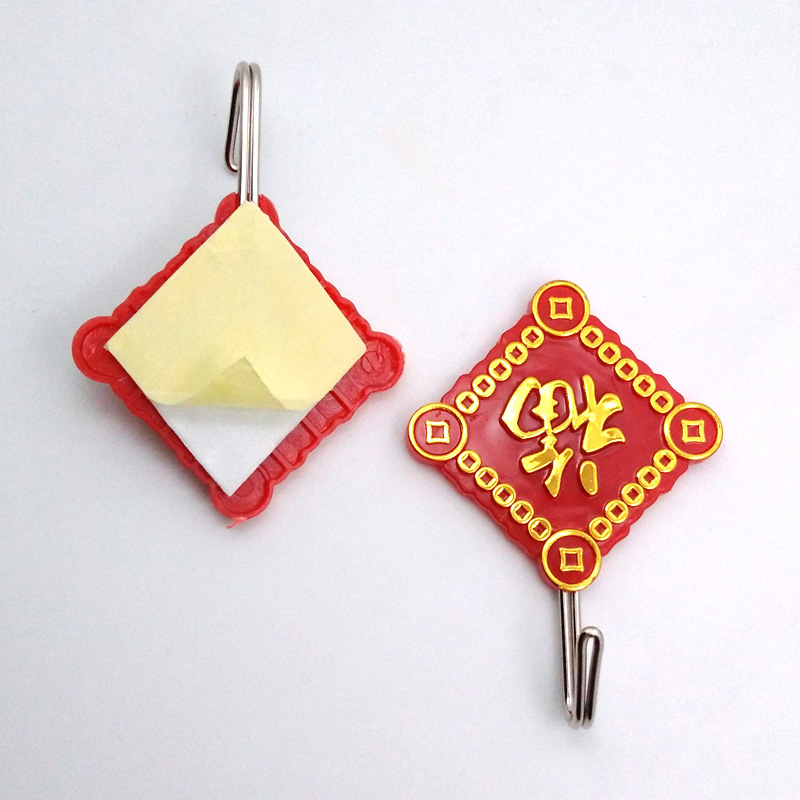 Large Red Hook Fortune Character Adhesive Hook Strong Load-Bearing Door Hook Adhesive Hook Household Adhesive Hook Wall Load-Bearing