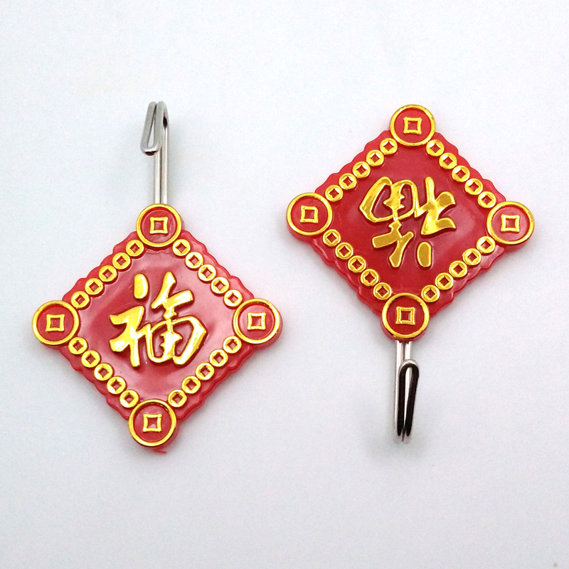 Large Red Hook Fortune Character Adhesive Hook Strong Load-Bearing Door Hook Adhesive Hook Household Adhesive Hook Wall Load-Bearing quantity