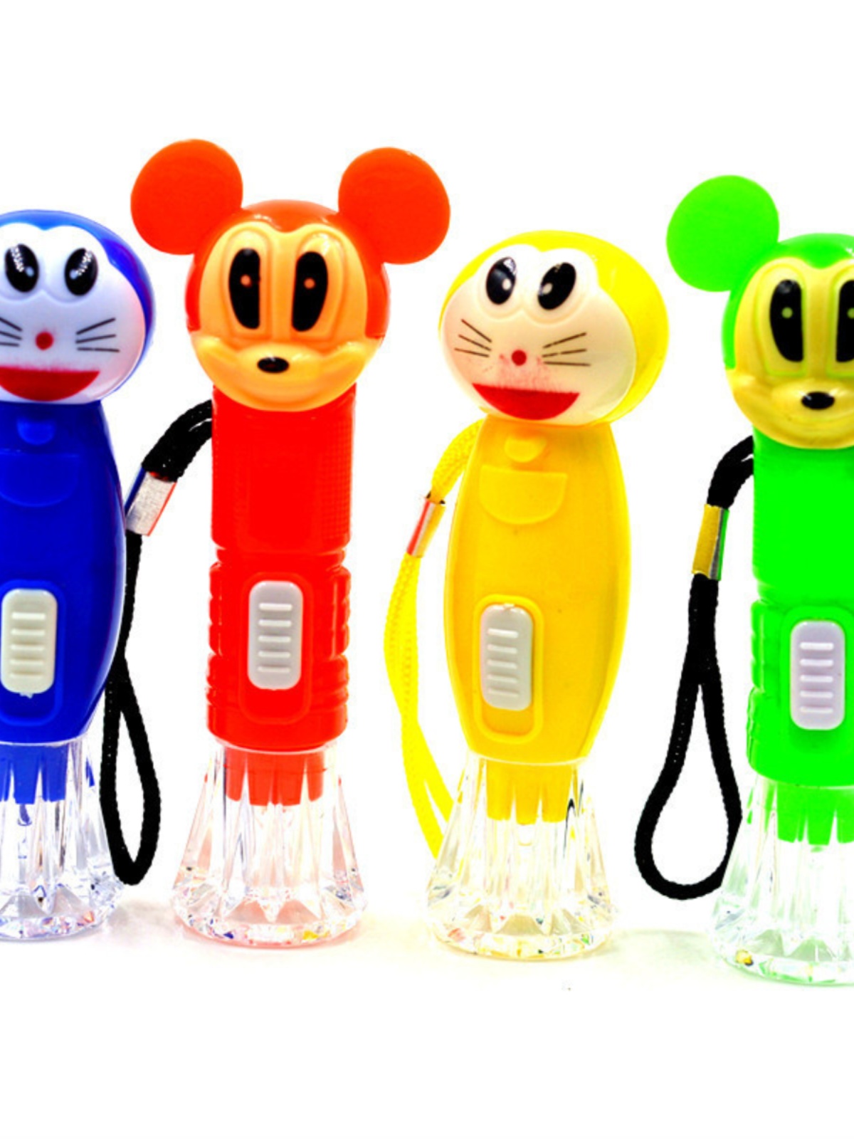 LED Mini Cartoon Plastic Flashlight, Doreamon and Mickey Mouse Children’s Small Flashlight for Night Markets