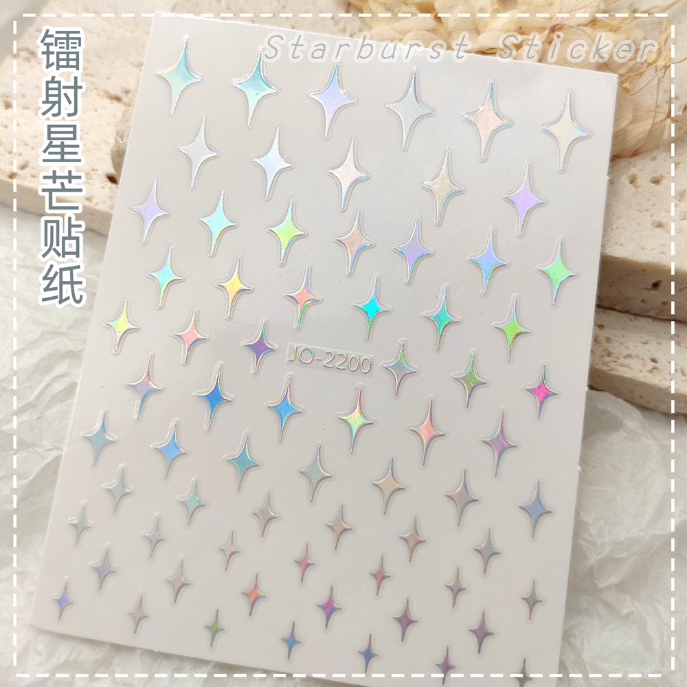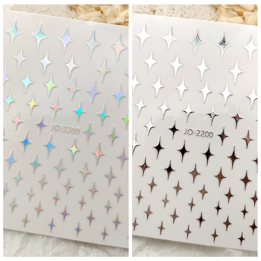 Nail Art Laser Silver Star Stickers, 3D Nail Decorations