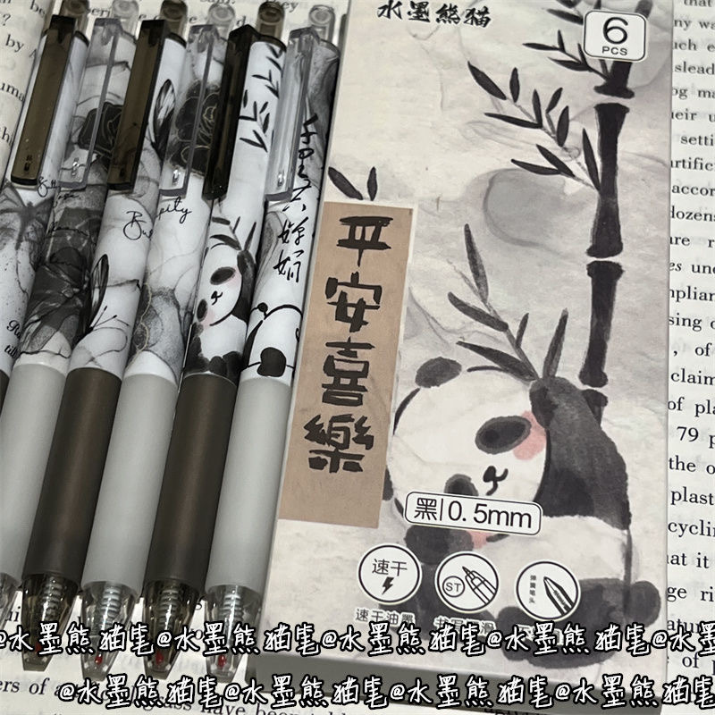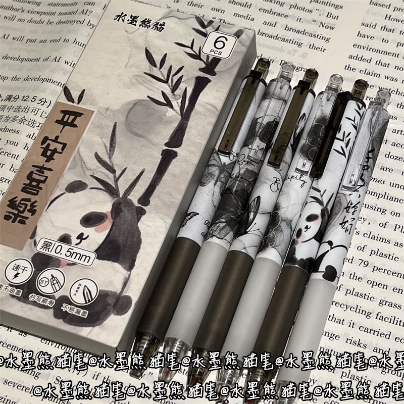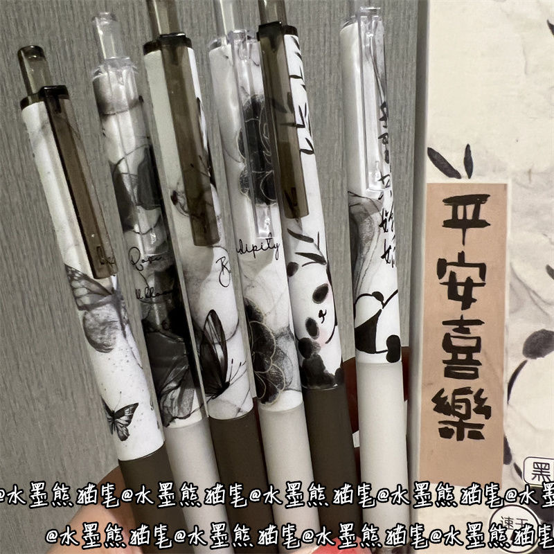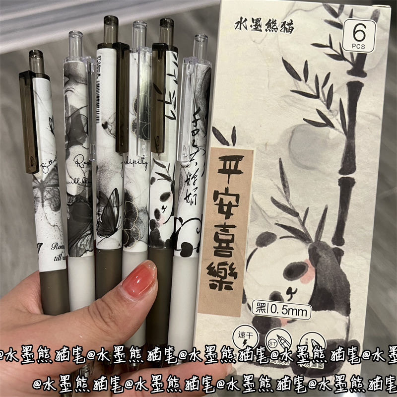 National Style Ink Wash Panda Push Button Gel Pen Ins High Aesthetic Student Limited Edition Brush Pen 0.5 Smooth Black Pen
